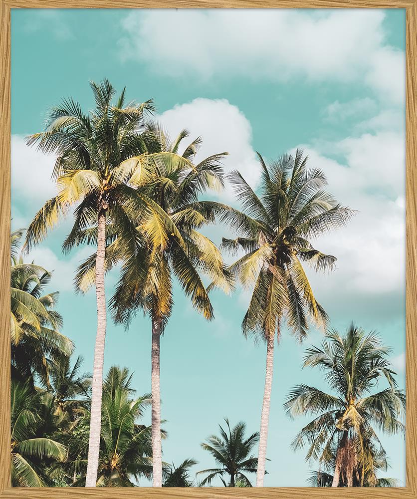 Erleben Sie den Sommer das ganze Jahr. Der Kontrast zwischen dem leuchtend grünen Laub und dem strahlend blauen Himmel schafft eine visuell fesselnde Komposition, die ein Gefühl von Gelassenheit und tropischer Glückseligkeit hervorruft. Lassen Sie sich von dieser sommerlichen Stimmung verzaubern und bringen Sie ein Stück Natur in Ihr Zuhause. Der Digitaldruck Tropical Palm ist in einen eleganten Eichenholzrahmen eingefasst. Ein praktisches Aufhängesystem ist inklusive, sodass Sie das Bild sofort problemlos an Ihrer Wand befestigen können.