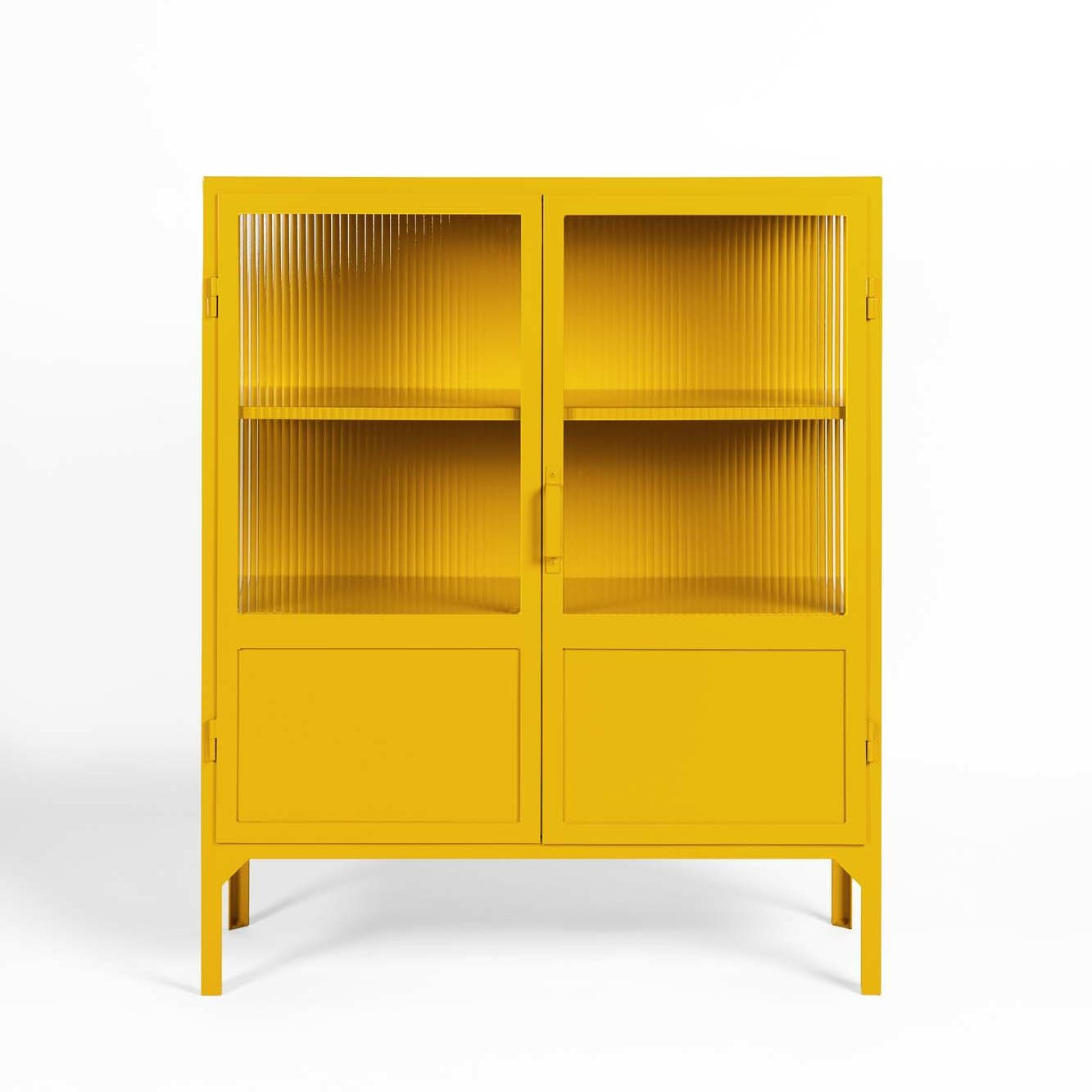 Die Metallvitrine Outfront kombiniert geradliniges, industrielles Design mit echter Funktionalität. Durch die klaren Linien setzen sie Ihre Einrichtung wirkungsvoll in Szene, während sie als Aufbewahrungs- oder Präsentationsfläche dienen. Das Angebot an leuchtenden Farben verleiht dem Möbelstück eine spielerische Note.