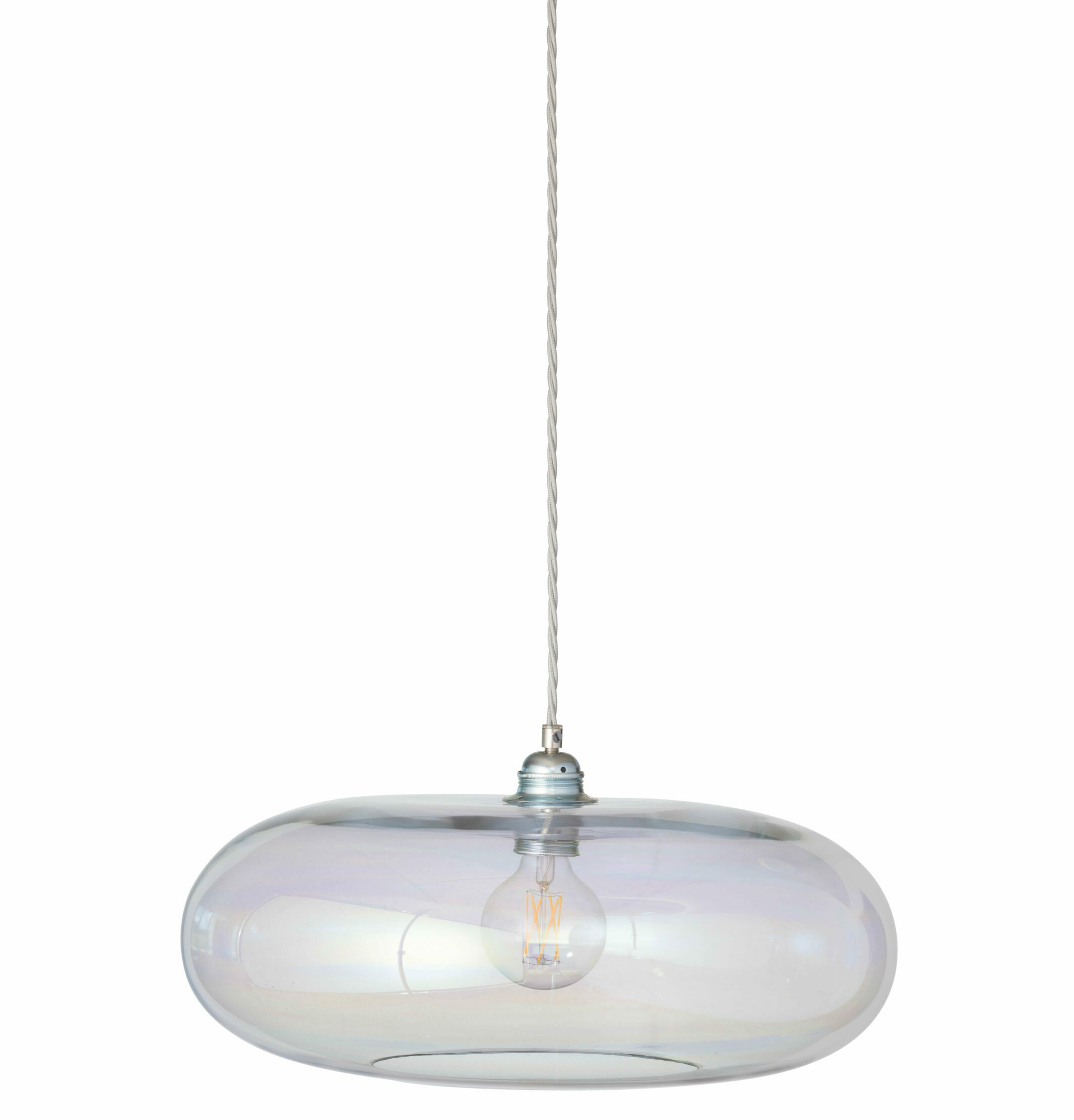 Die Pendelleuchte Horizon XL inspiriert von einer klassischen, zeitlosen runden Form ist die perfekte Wahl für jeden Raum in deinem Zuhause. Die mundgeblasene Pendelleuchte ist mit einer Halterung und einem Textilkabel in zwei Ausführungen – matt gold und matt silber – erhältlich. Handgefertigt in Dänemark.