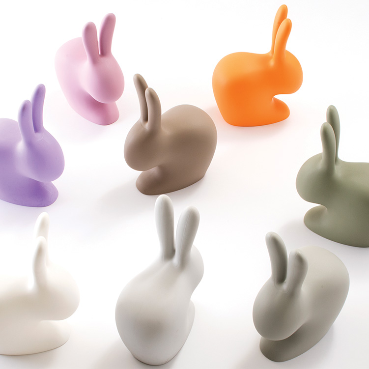 Qeeboo ist eine italienische Marke der nächsten Generation. Die Designmarke wurde von Stefano Giovannoni entworfen und eingeführt. Die Kreationen sollen Emotionen, positive Gefühle und einen überraschenden Effekt vermitteln. Sie sind bewusst so gestaltet, dass sie vielseitig einsetzbar und für jedermann geeignet sind. Die Pop-Ikone Hasenfamilie symbolisiert Liebe und Fruchtbarkeit. Sie sollen Glück und gute Wünsche bringen. Der kleine Hase steht für das sanfte, liebevolle und scheue Tier.