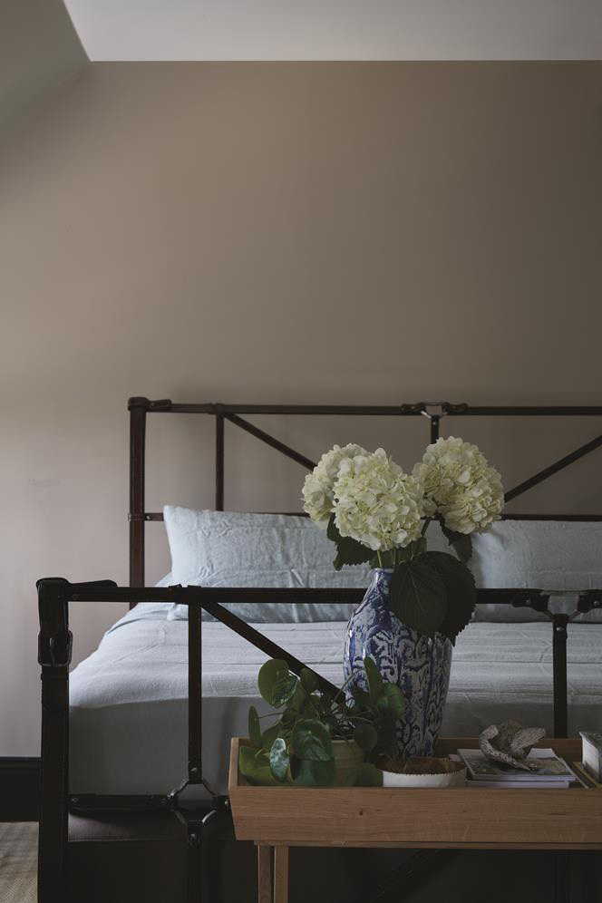 Skimming Stone No. 241 von Farrow & Ball ist ein warmer, hellgrauer Farbton, der nach der Farbe des Putzes aus dem 19. Jahrhundert benannt ist. Er weckt Erinnerungen an Kindheitstage und das Spielen mit Steinen. Skimming Stone ist äußerst vielseitig und verleiht einem Schlafzimmer eine bezaubernde Weichheit. Es harmoniert sowohl mit anderen modernen Neutraltönen wie Elephant’s Breath als auch mit dunkleren Nuancen wie Pelt oder London Clay.