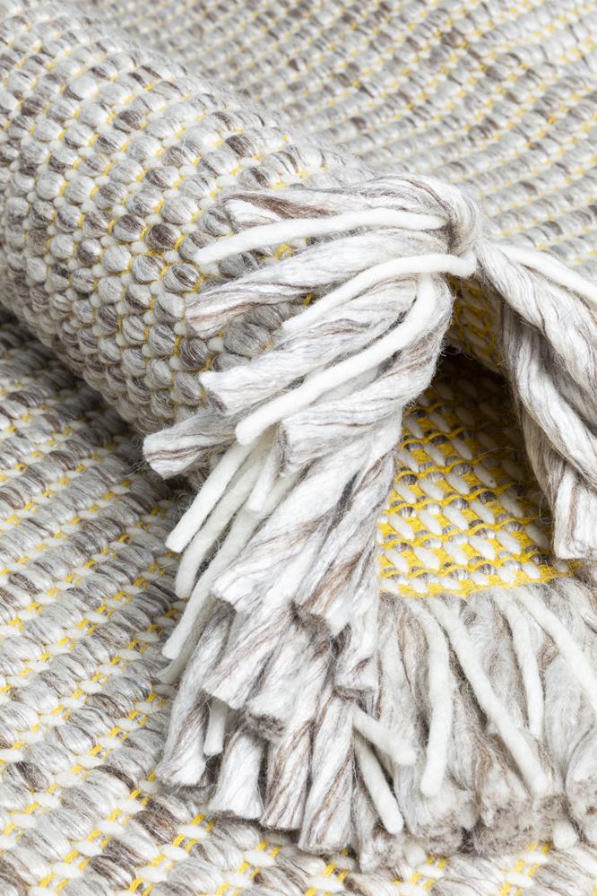 Hergestellt aus authentischen, huskyfarbenen Fäden strahlt dieser Teppich einen boho Charme aus. Er vereint feinste Wolle und Viskose, um Ihnen ein angenehmes Gefühl zu bieten. Die Verbindung von textilen Eigenschaften und warmem Gelb durch freundlich leuchtende Akzentgarne verleiht diesem Teppich eine ansprechende Note.